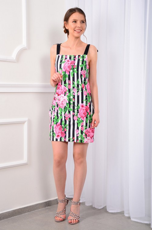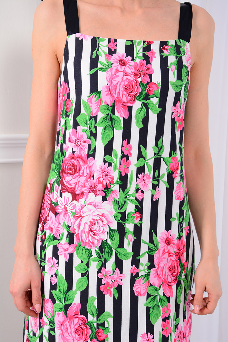 Сарафан — идеальная одежда для лета. Именно поэтому, с наступлением жарких дней, мы предлагаем вам оригинальный сарафан на атласных бретелях. Натуральная хлопчатобумажная ткань и крой, мастерски обыгрывающий полосатый принт ткани, делают этот сарафан хитом сезона. Сарафан на подкладке.