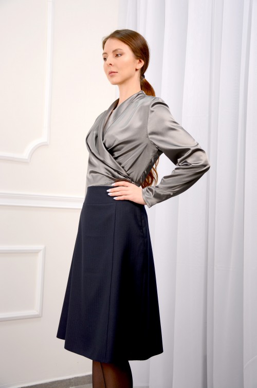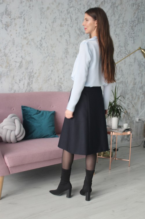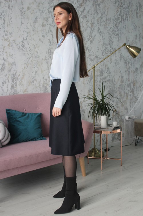 Модель юбки трапеции – пример силуэта, не теряющего актуальности на протяжении десятилетий. Юбка имеет узкую форму от талии до середины бедер, расширяется вниз клиньями и формирует вид трапеции. Этот фасон безупречно подходит полным дамам и тем, у кого невысокий рост. Благодаря нескольким вертикальным швам визуально вытягивается любая фигура, она становится красивее и тоньше. Юбка на подкладке. Застёжка молния в боковом шве.