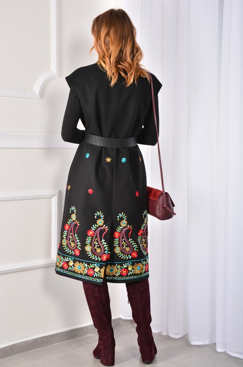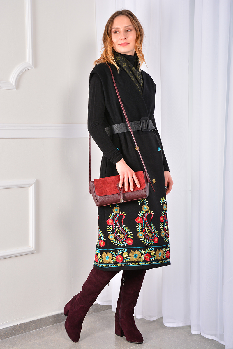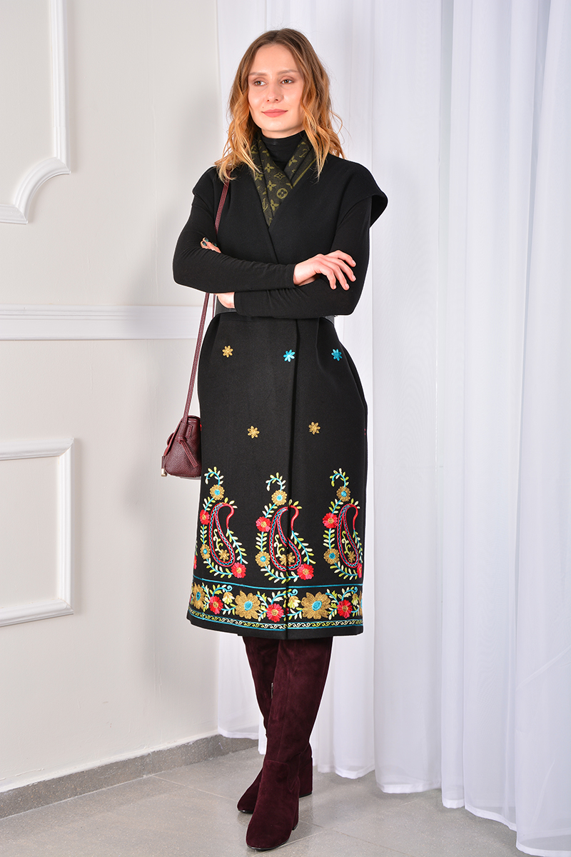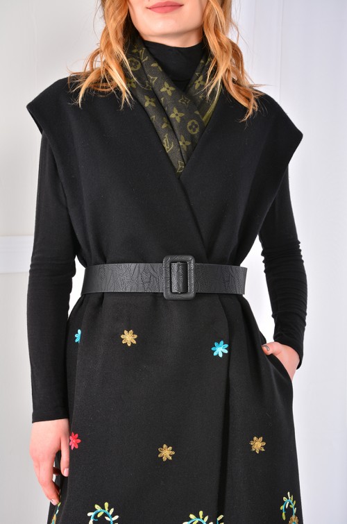 Состав: Верх жилета - (Купонный прессованный флис с вышивкой) 84% полиэстер, 16% вискоза. Низ жилета - (Шерстяное сукно) 85% шерсть, 15% полиэстер. Подкладка - 100% вискоза